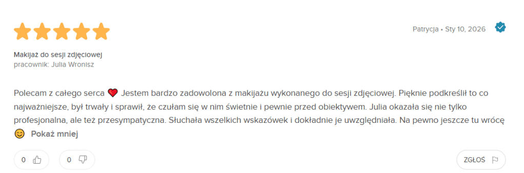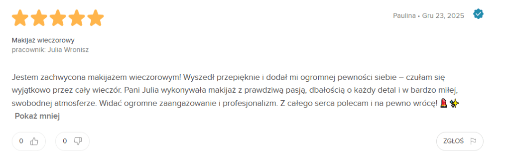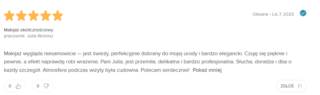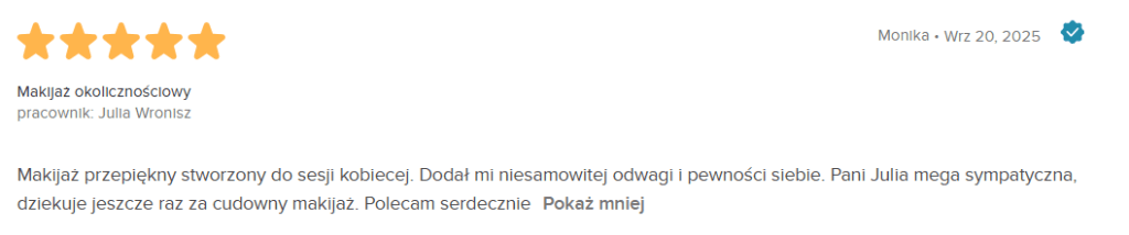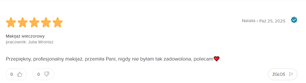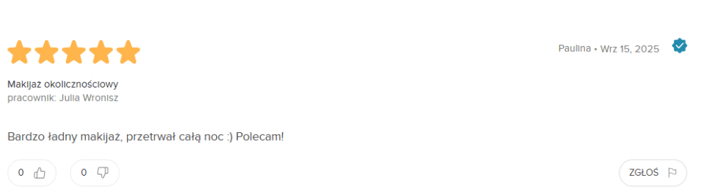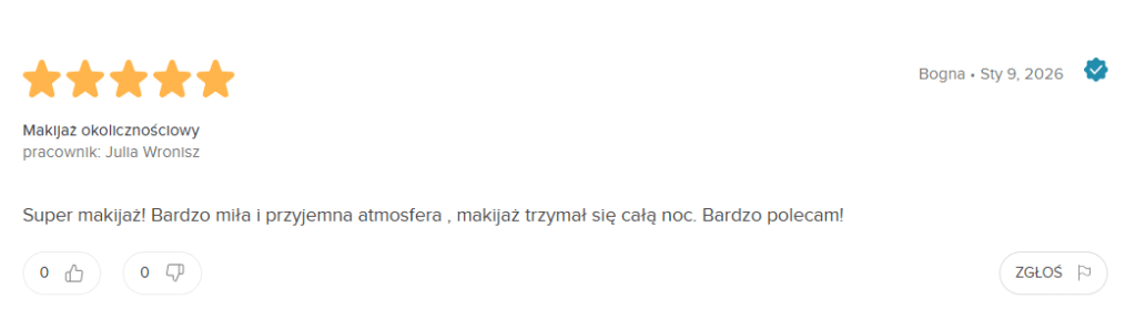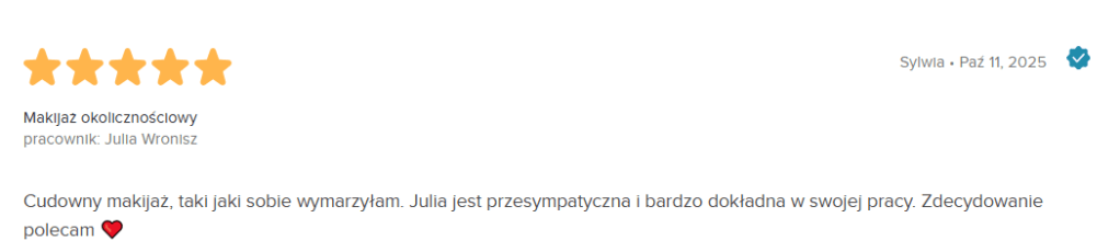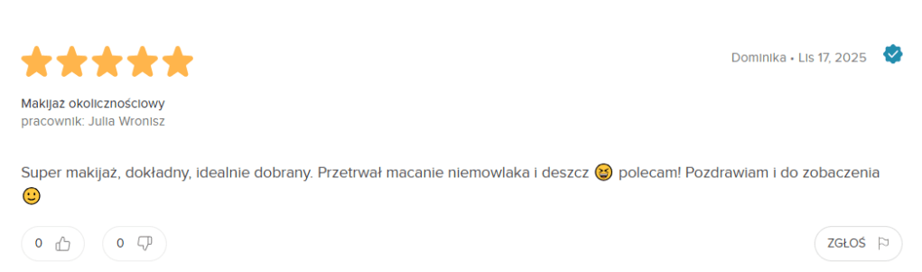 Super makijaż, dokładny, idealnie dobrany. Przetrwał macanie niemowlaka i deszcz 😆polecam! Pozdrawiam i do zobaczenia 🙂